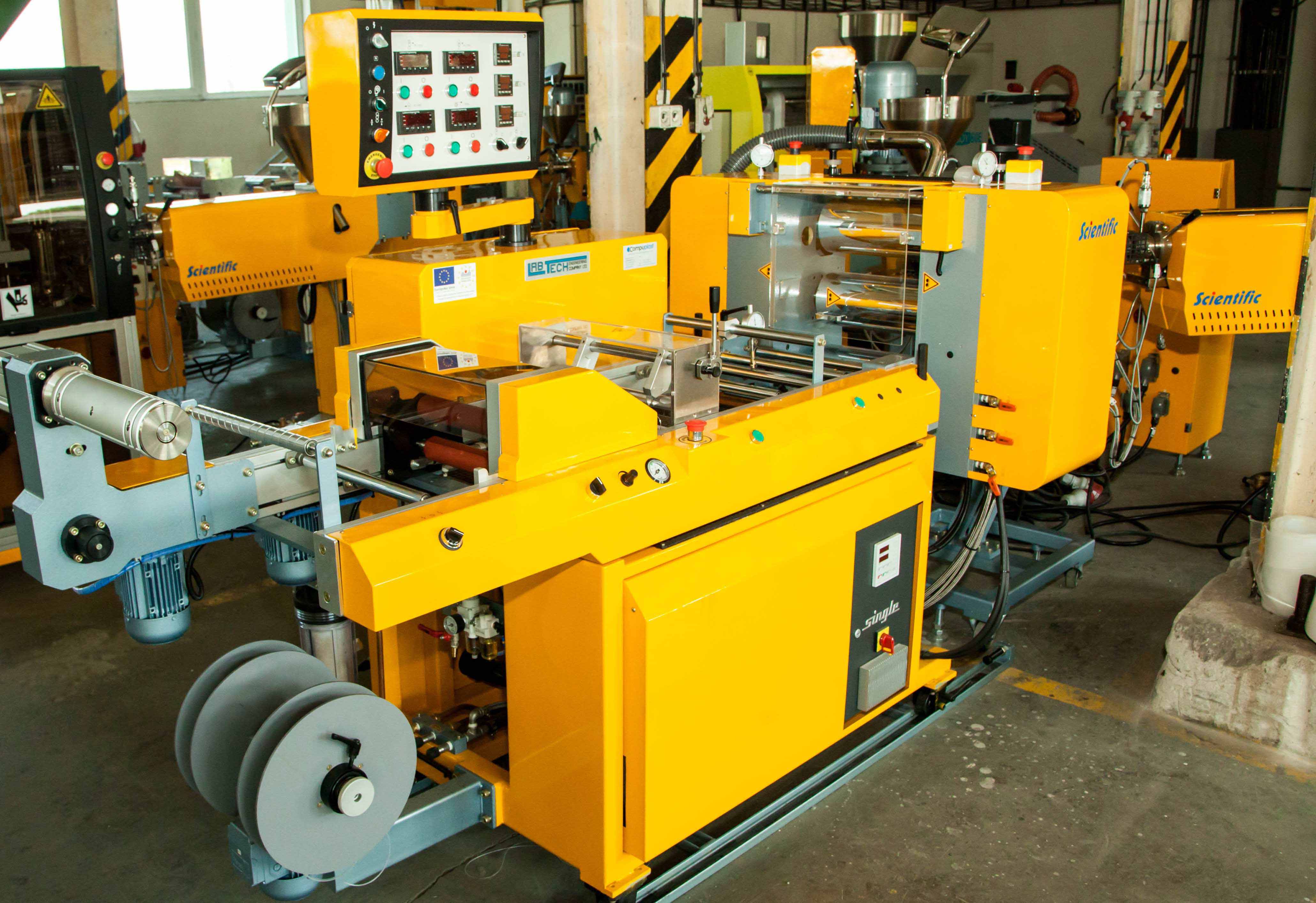 Chill-roll linka je vybavená adaptérom umožňujúcim pripojenie dvoch jednozávitovkových vytlačovacích zariadení. Kombináciou dávkovania dvoch typov polymérov do hlavy je možné pripraviť fóliu s konštrukciou vrstiev A-A alebo A-B-A. Linka je vhodná pre testovanie kombinácií polymérov pre viacvrstvé obalové materiály so špecifickými mechanickými či inými fyzikálnymi parametrami, najčastejšie pre výrobu bariérových fólií. Tiež je možné optimalizovať pomer hrúbok jednotlivých vrstiev.