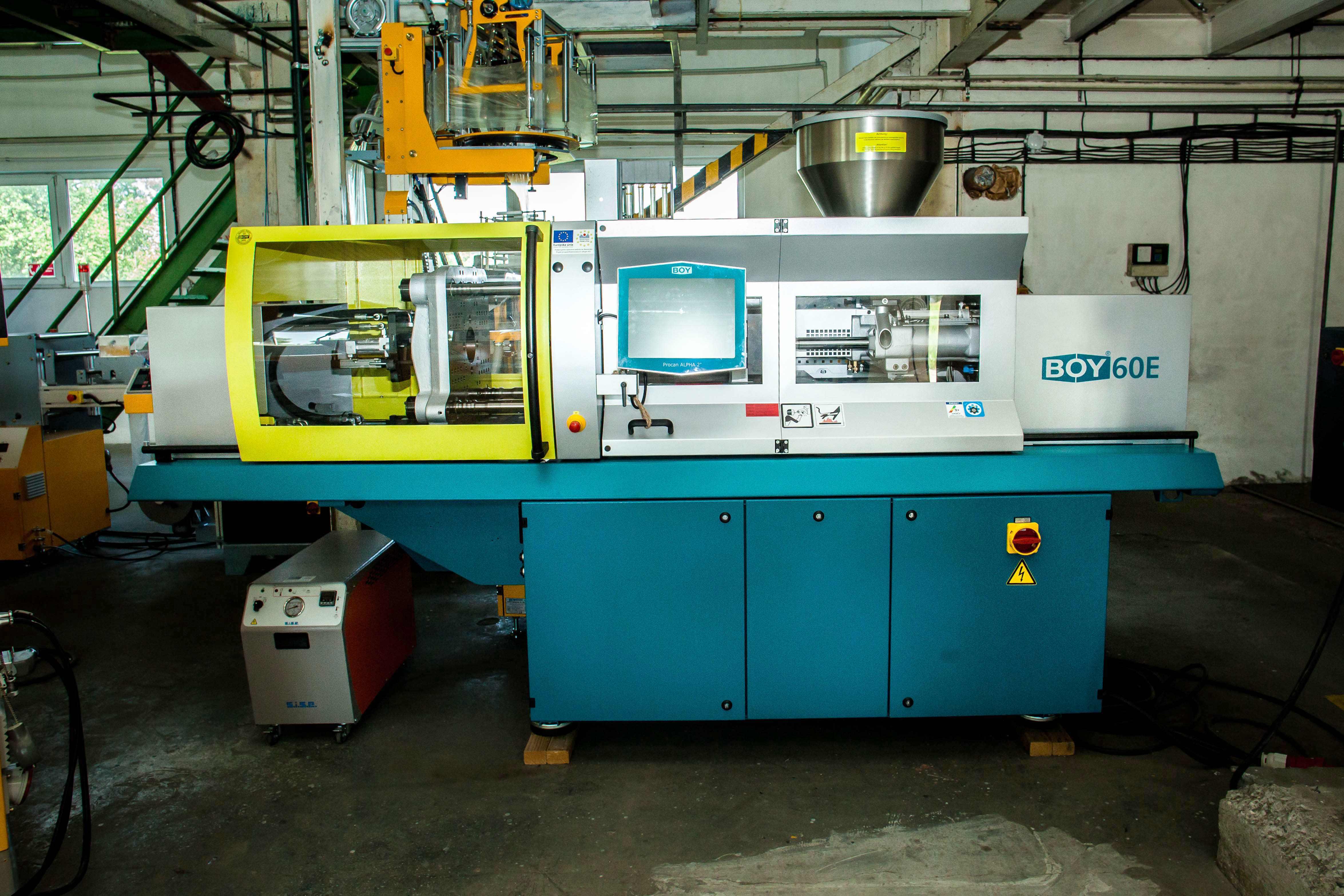 Štandardný vstrekolis od firmy BOY. V súčasnosti je vybavený formou na vstrekovanie lopatiek pre ťahovú skúšku podľa ISO 527 a univerzálnych skúšobných telies 80x10x4 mm pre testovanie napr. rázovej húževnatosti. Okrem toho je možné výmenou vložiek vstrekovať telesá pre vyhodnotenie zmrštenia a optických vlastností výliskov.